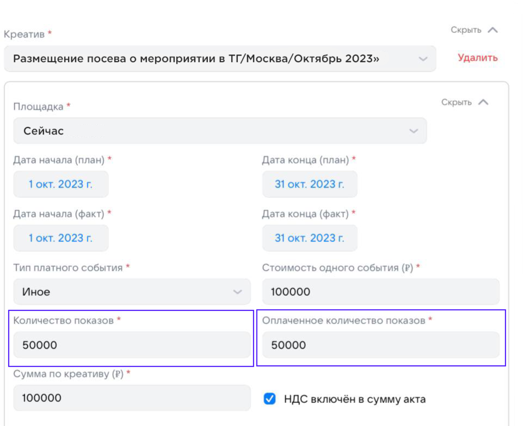 Каждый ОРД устанавливает свои правила оплаты. В Озоне оплачивает тот, кто занимается созданием токенов. А в Медиаскауте платят все участники цепочки, но тот кто оформляет токен, платит больше. Агентствам мы советуем закладывать комиссию в стоимость услуг и выносить её отдельно в смете — так заказчику сразу будет понятно, за что он платит.